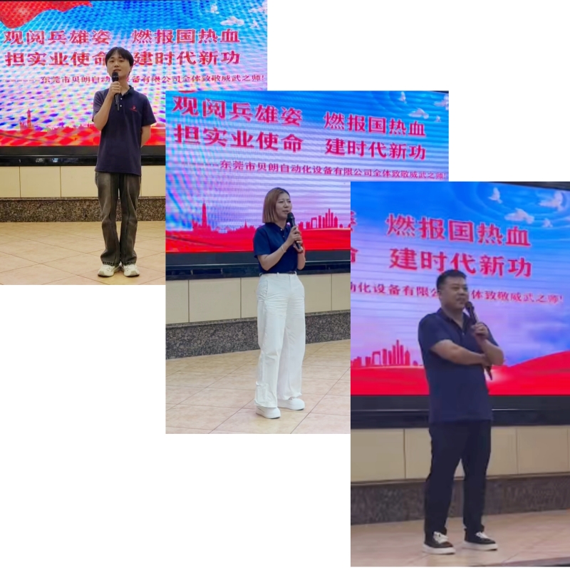 閱兵結(jié)束,多位同事踴躍發(fā)言紛紛上臺分享了觀后感, 共同的聲音是:何其有幸,生于華夏。真理只在大炮的射程之內(nèi),作為貝朗自動化的一員,我們或許不在閱兵場上,但我們同樣站在國家發(fā)展的重要戰(zhàn)場上——制造業(yè)的戰(zhàn)場。我們生產(chǎn)的每一臺線材成型機,都是中國工業(yè)基礎(chǔ)的一部分;我們突破的每一項技術(shù),都是在為“中國制造”向“中國智造”轉(zhuǎn)型升級貢獻實實在在的力量。